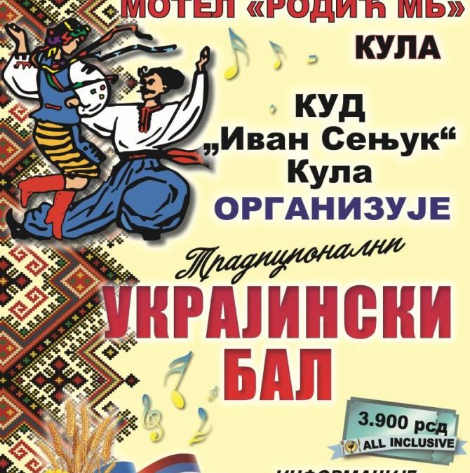 Традиционални Украјински бал, који организује Културно уметничко друштво ,,Иван Сењук“ из Куле, биће одржан у суботу 21. фебруара са почетком у 19 часова.